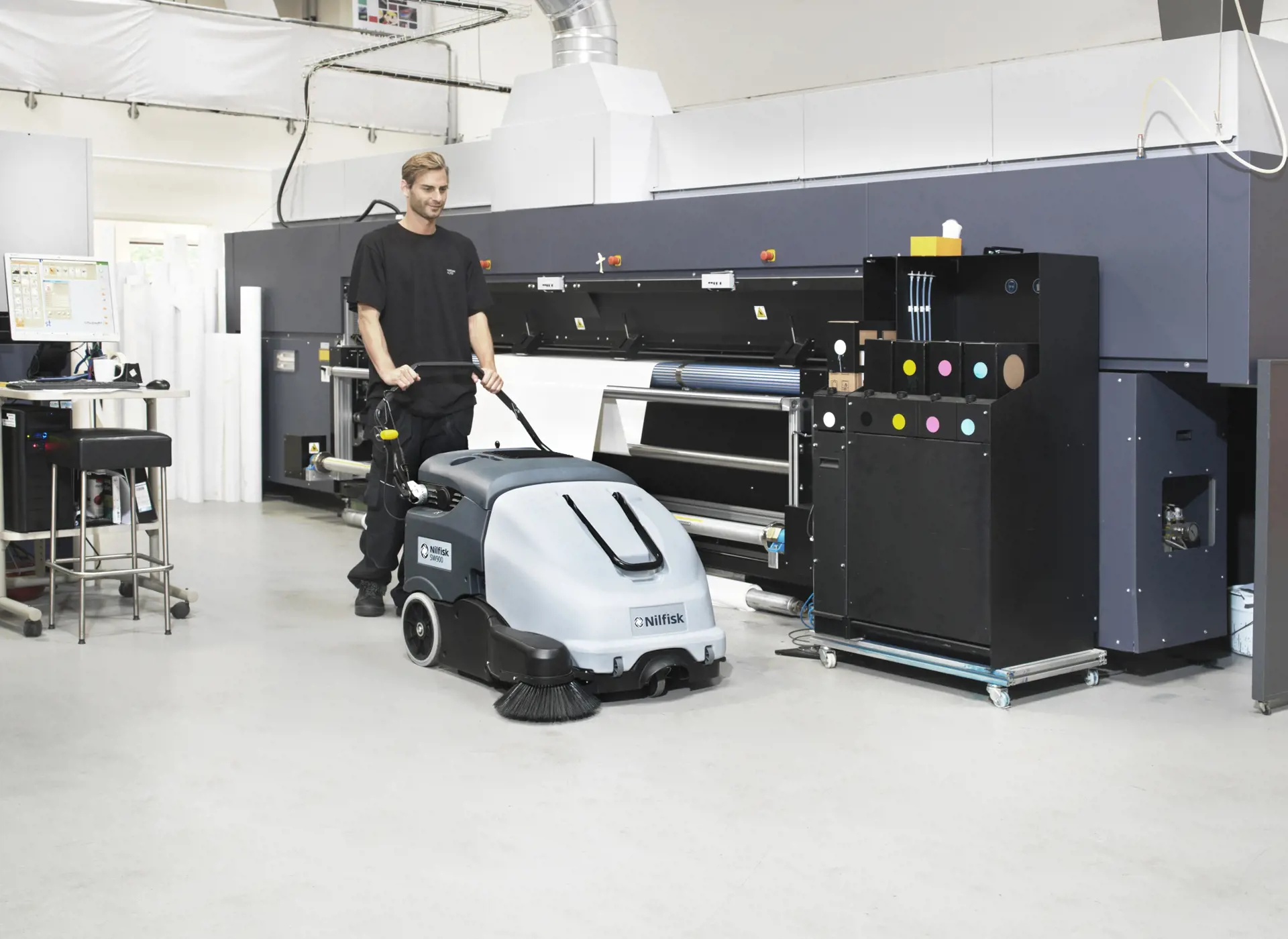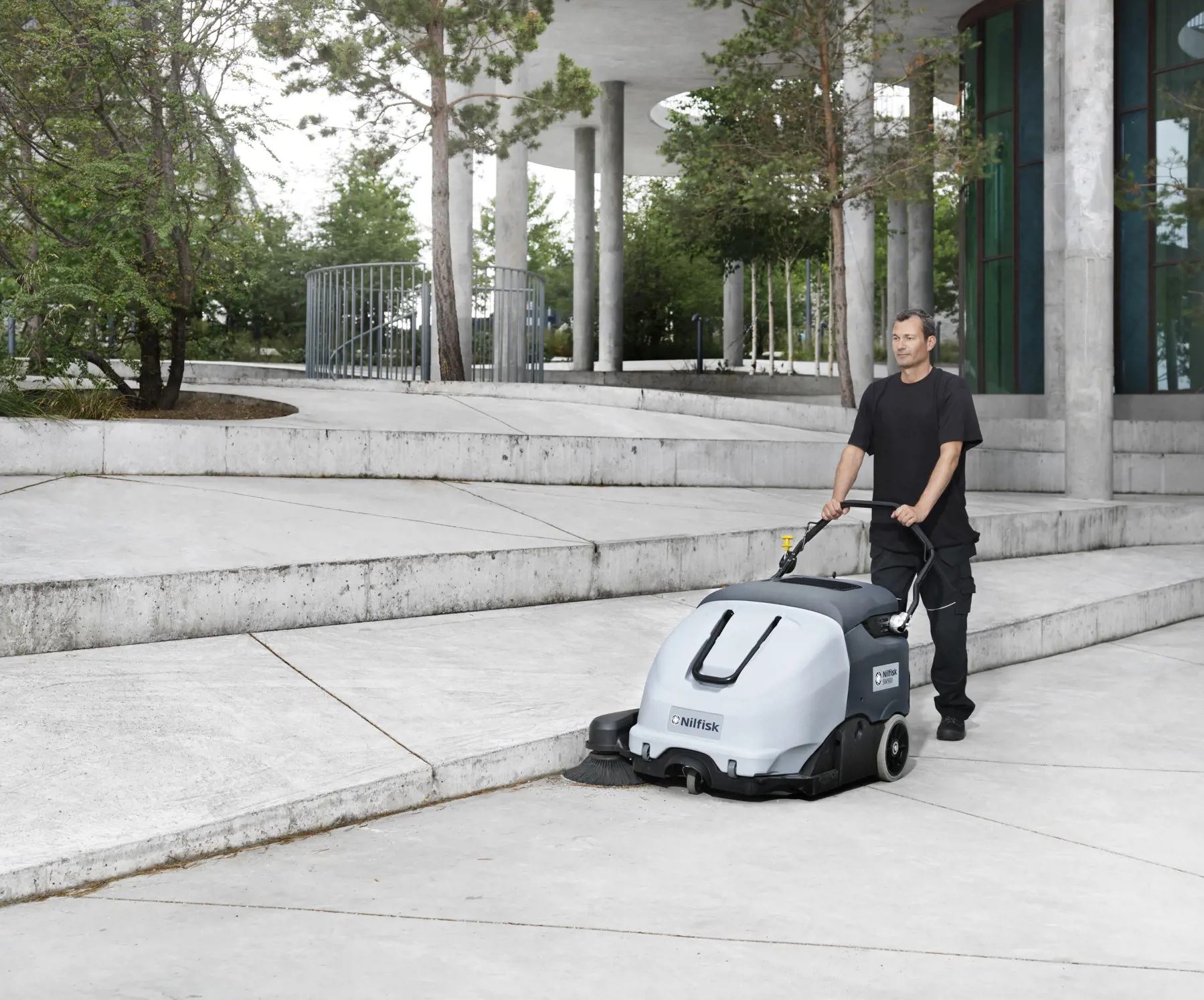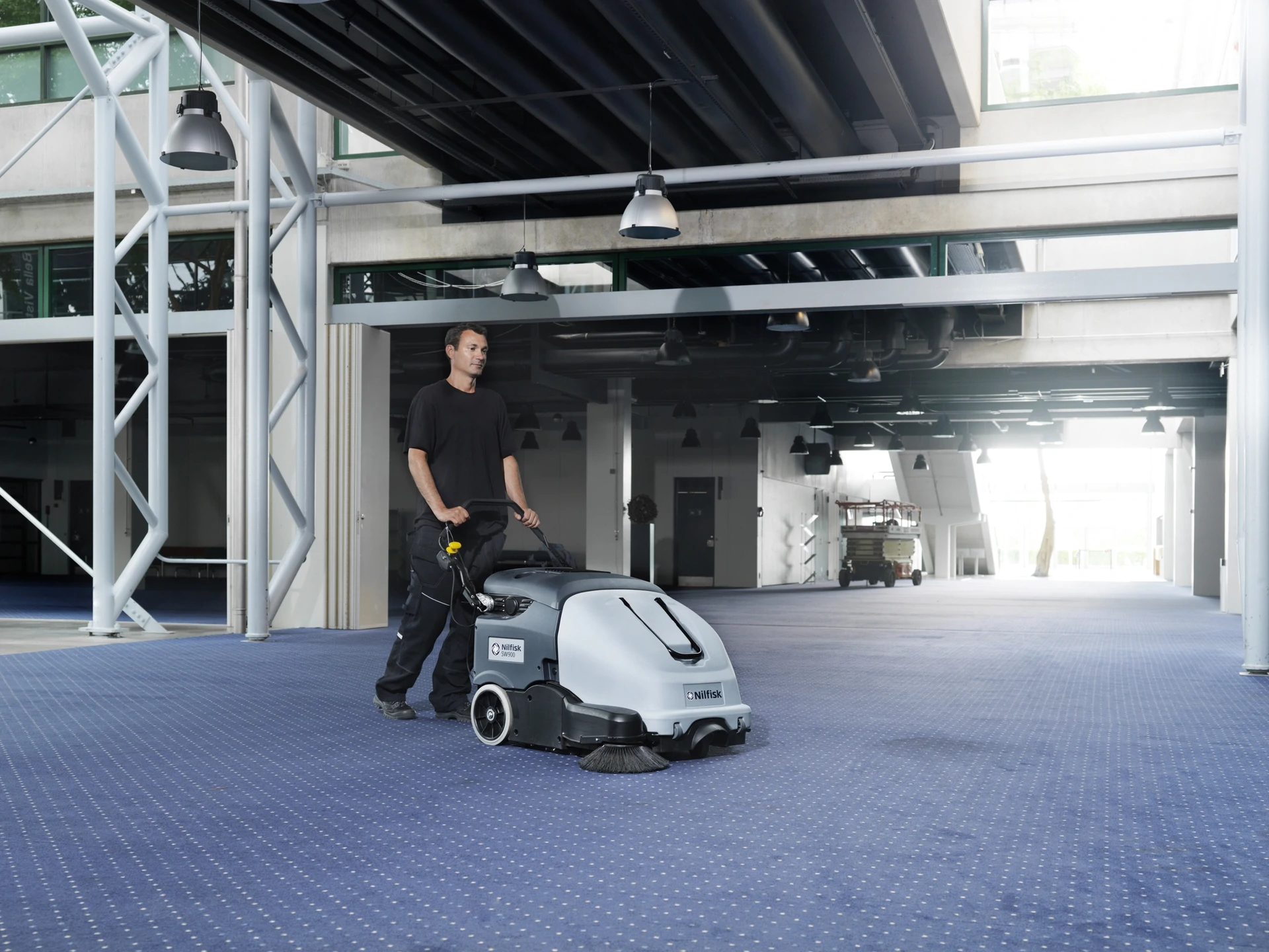 SW900 walk-behind sweeper for both indoor and outdoor use offers dust free removal of dry debris. It will increase your everyday productivity through its features which include total control from operator position, improved ergonomics with hopper on wheels, and higher cleaning performance.