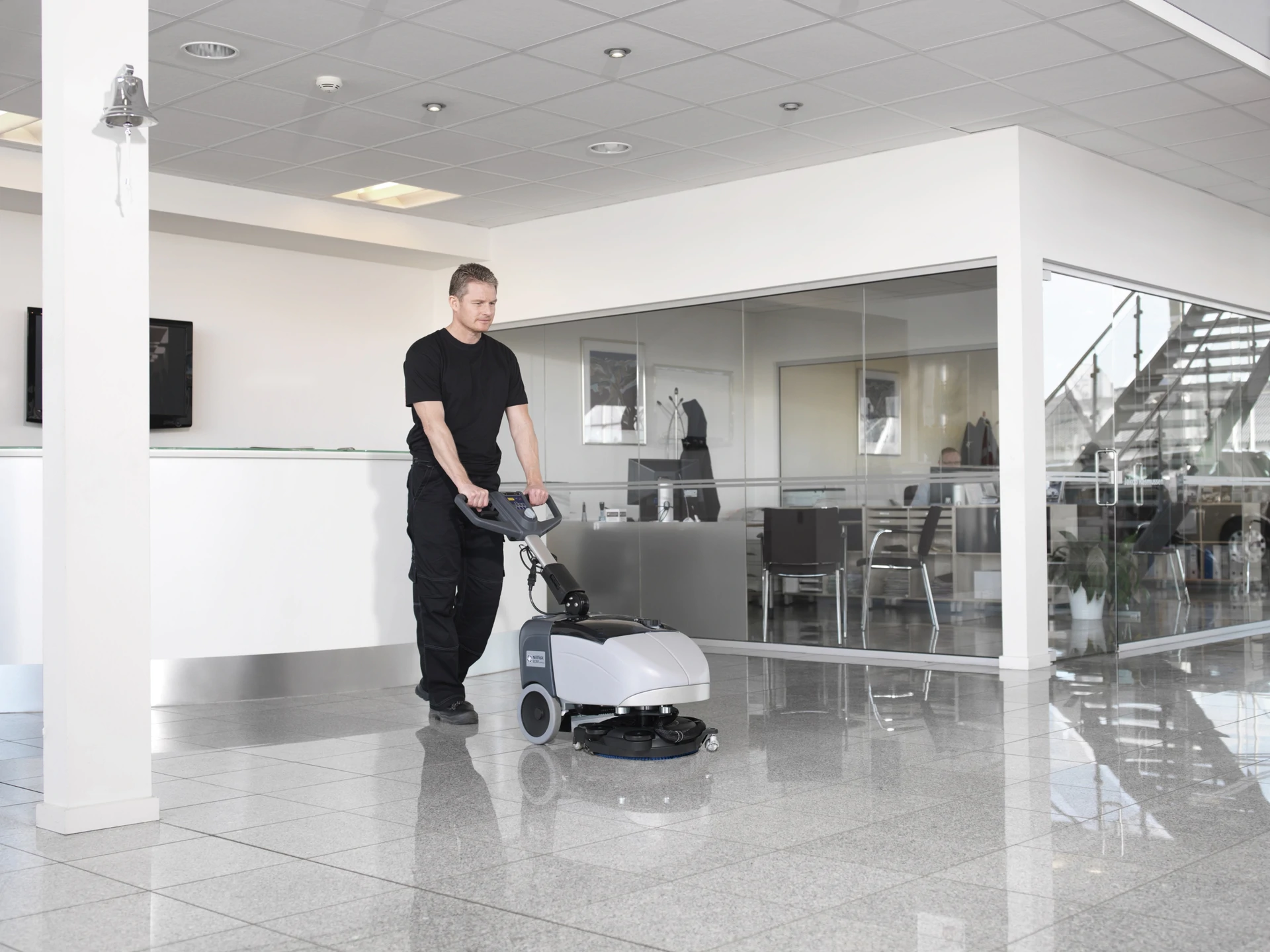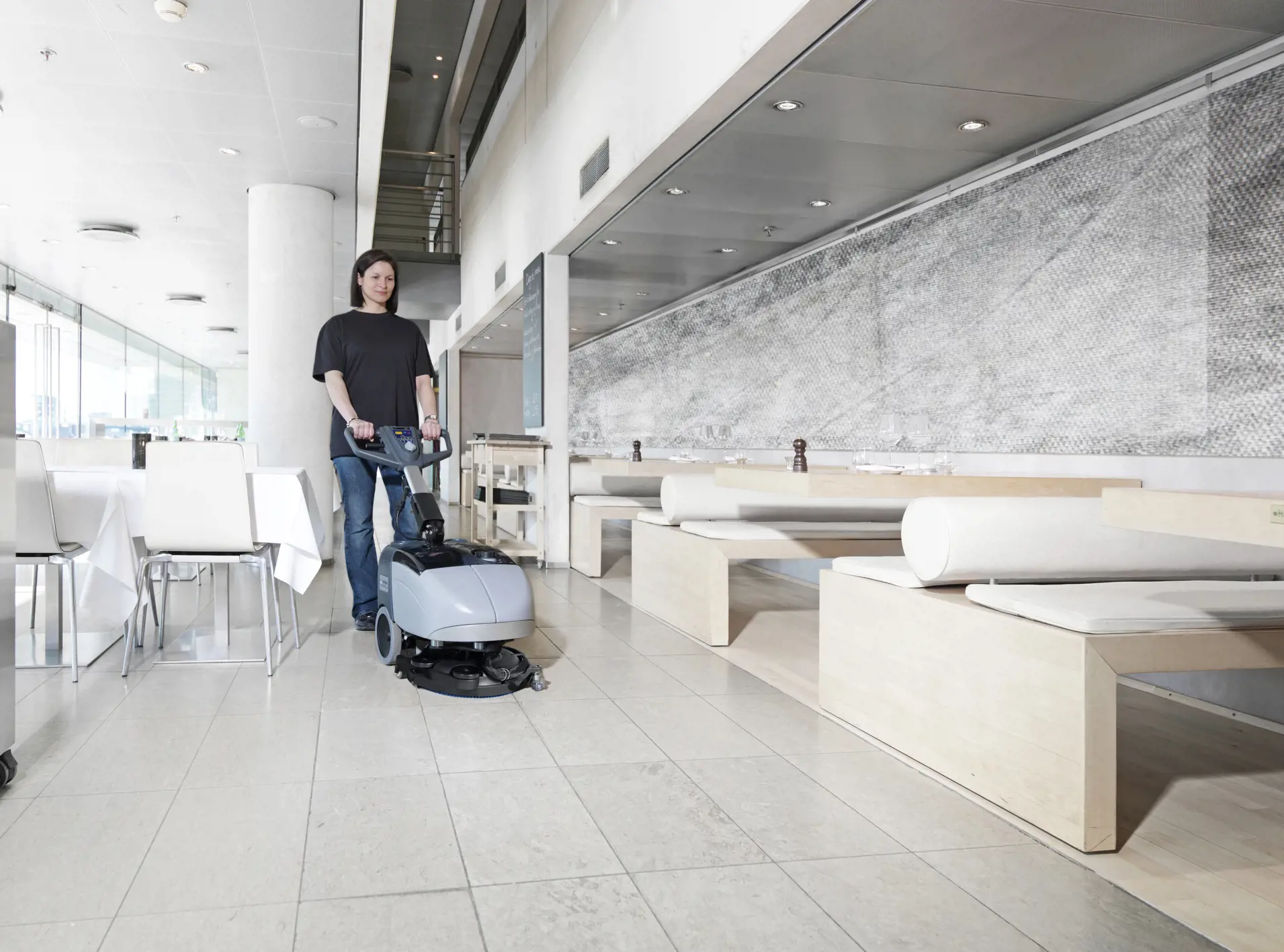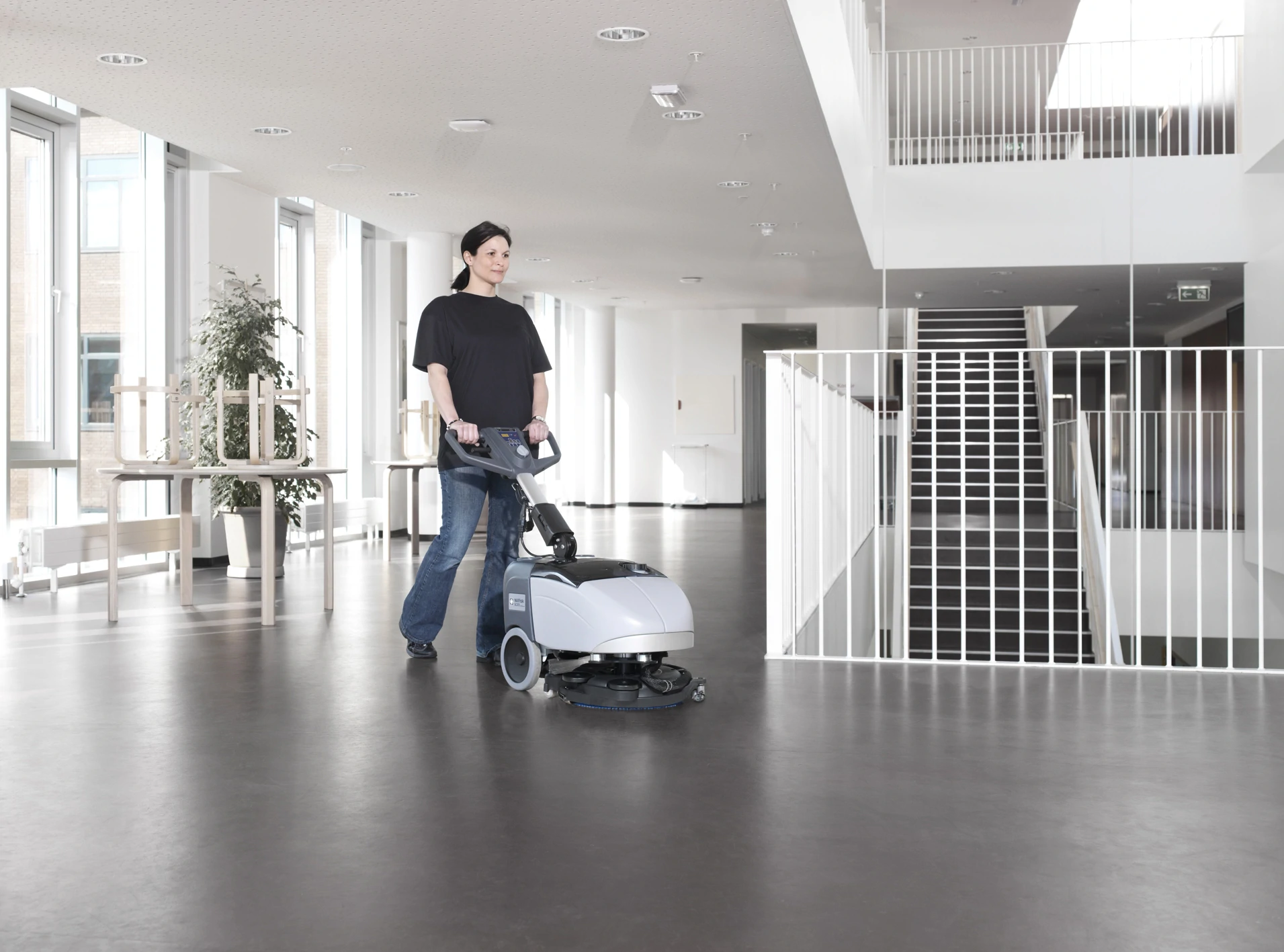 Nilfisk SC351 offers both forward and backward scrubbing and drying with an impressive brush pressure of 30 kg. Particularly suitable for cleaning in crowded places, between and behind tables, shelves, furniture and other less accessible areas.