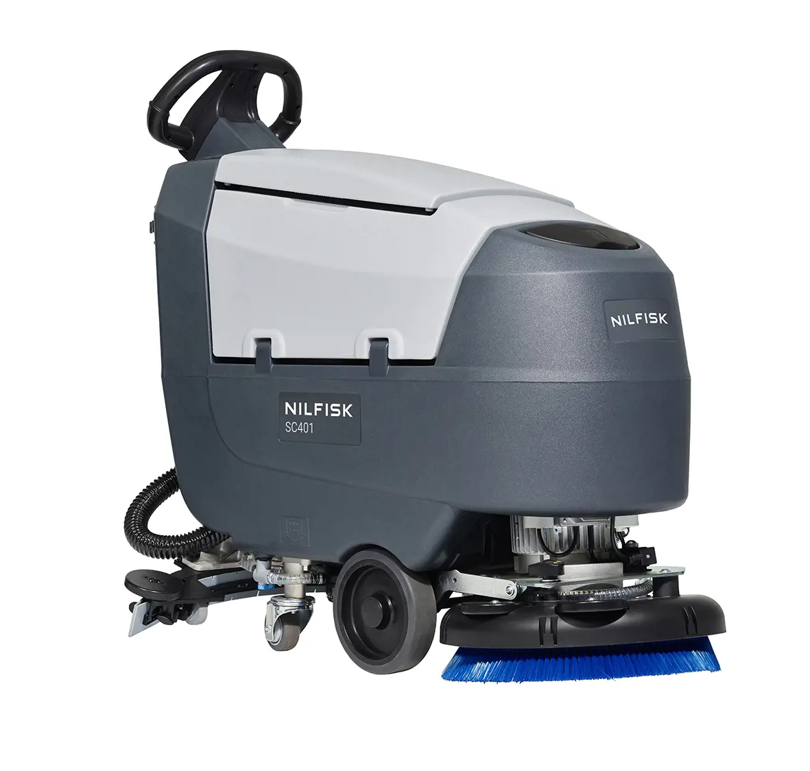 The compact and highly maneuverable SC401 walk-behind scrubber dryer offers all the speed, accuracy and ease-of-use you need for better cleaning of floors. To make things complete this high-performance machine has an extremely low sound level to enable daytime cleaning – even in sound sensitive areas.