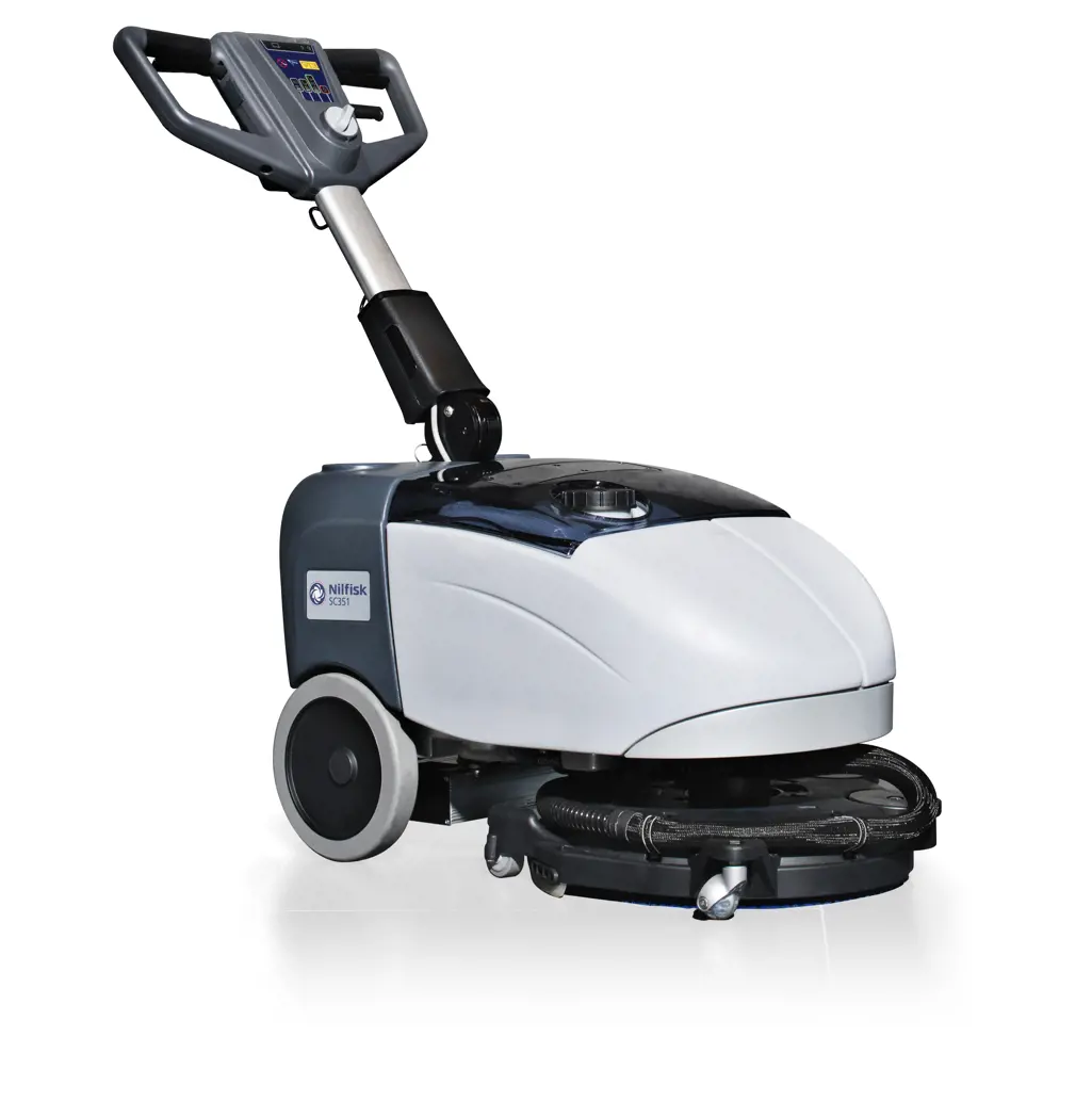 - Slow and steady: Good cleaning results require the right amount of water and chemicals – and giving your scrubber dryer enough time to do its work. Adjust the water flow rate and down pressure to the correct levels depending on the soil load of the floor in question and allow for sufficient dwell time. You can choose from stand-on/ride-on scrubber dryers or walk-behind scrubber dryers depending on your need.