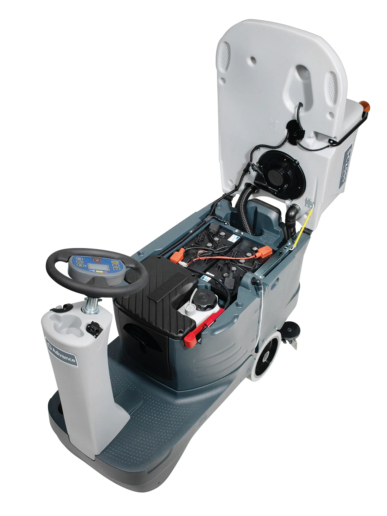 Eliminate excess solution dispensing with SmartFlow™ technology, which automatically reduces solution flow rate when the machine slows down Extend the time between dump and refill by up to 50% with larger tanks and less dispensed solution Simplify user operation with One-Touch™ control and intuitive display integrated into the steering wheel Maneuver in narrow spaces thanks to the compact design Reduce costs by saving water and detergent, and contribute to green-cleaning, with the optional EcoFlex System