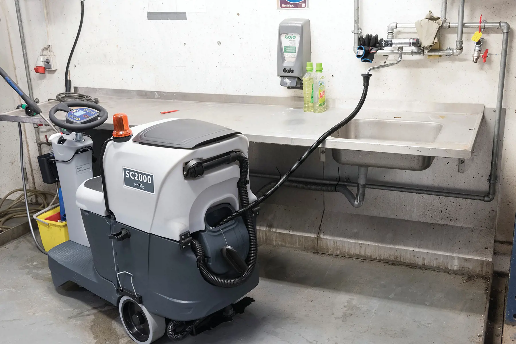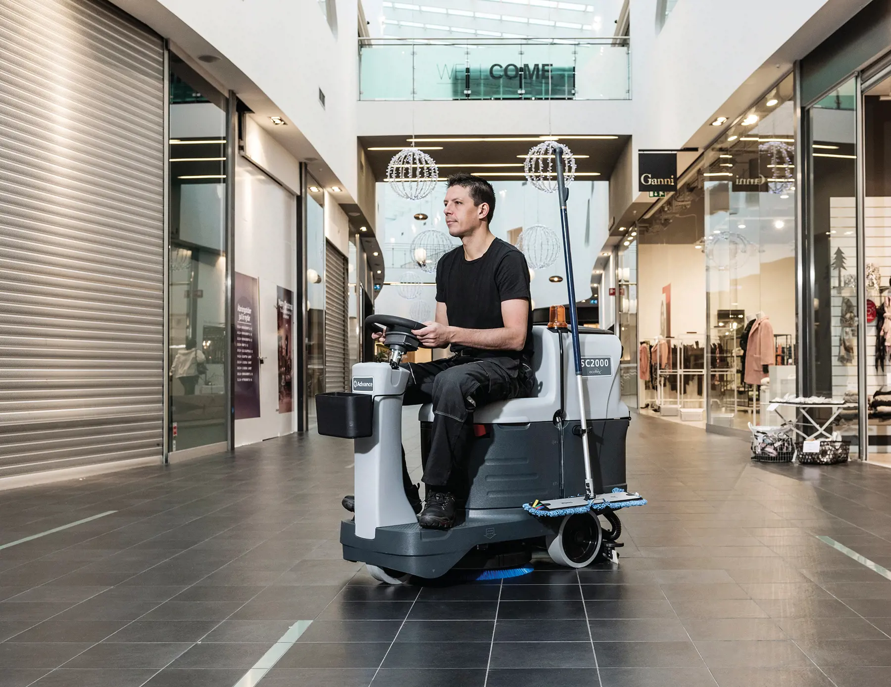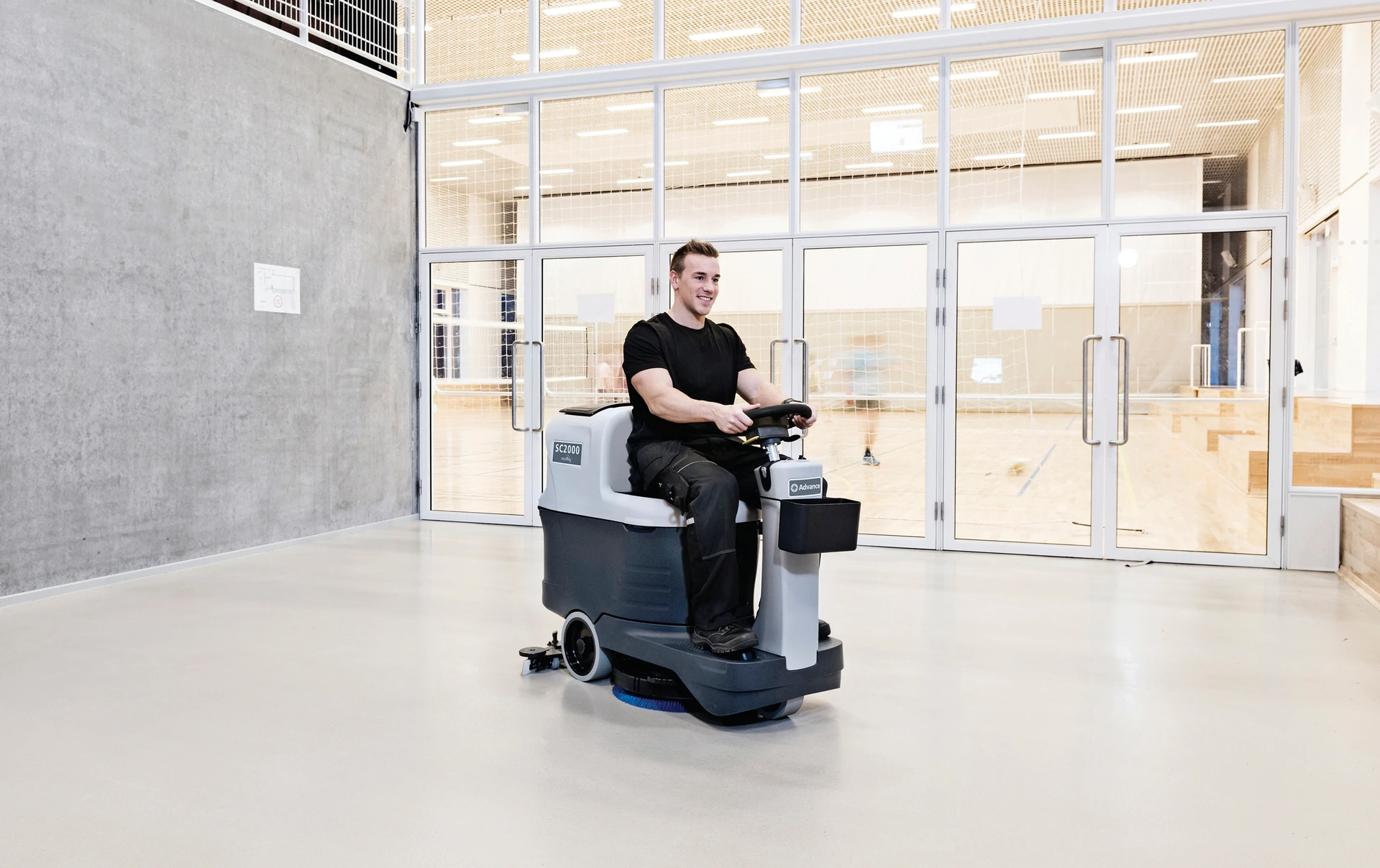 More Productivity in a Compact Scrubber The SC2000™ Micro Rider Scrubber combines the productivity and efficiency of a rider with the maneuverability of a walk-behind, making it the most productive 20” scrubber on the market — perfect for offices, supermarkets, restaurants, hotels, hospitals and schools.