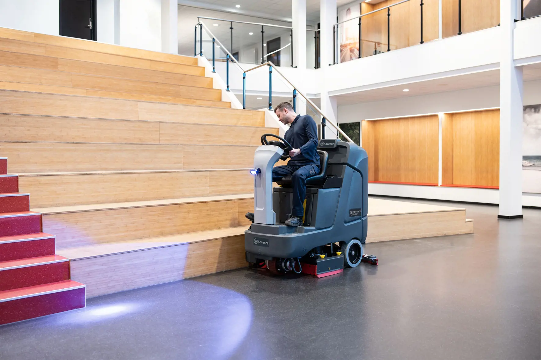 The SC4000 is a high-productivity, commercial ride-on scrubber perfect for cleaning both large, open spaces as well as small. With a more compact-design it is easy to maneuver in narrow spaces, and able to pass through standard-sized doorways.