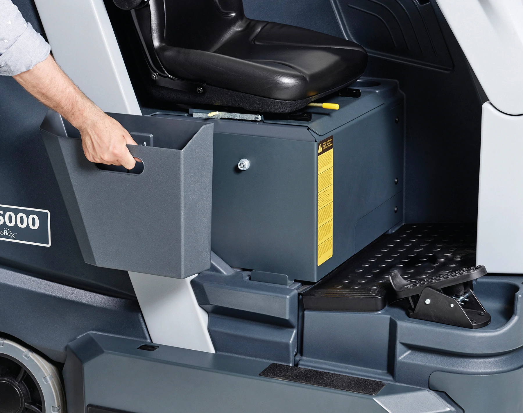 The Nilfisk SC6000 rider floor scrubber provides 30% greater run time and productivity than the nearest competitor in its class, so it can clean even the largest, most challenging spaces quickly, efficiently, and at a low total cost of ownership. It’s available in both disc (34” or 40”) and cylindrical (36”) versions and features our most advanced cleaning technologies, including our patented EcoFlex™ detergent management system for green cleaning and our patented DustGuard™ misting system for complete dust control.
