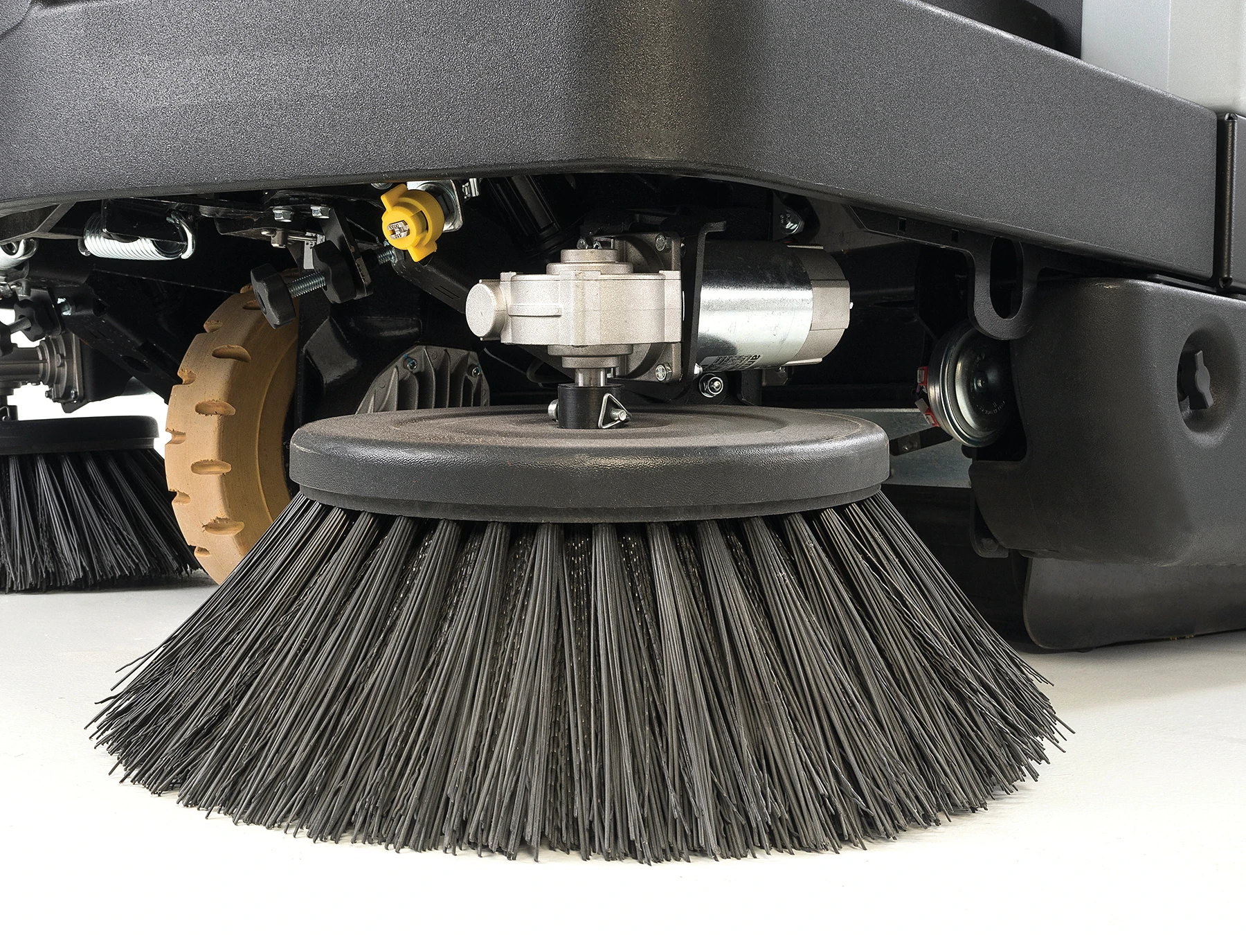 - Wear-compensating main broom sweeping system extends productivity through the life of the brush