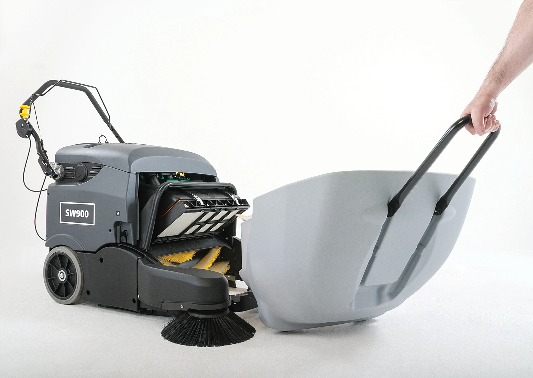 The SW900™ Walk-Behind Battery Sweeper is designed to maximize your cleaning productivity and effectiveness in virtually any setting — indoor or outdoor, rugged industrial applications or commercial applications.