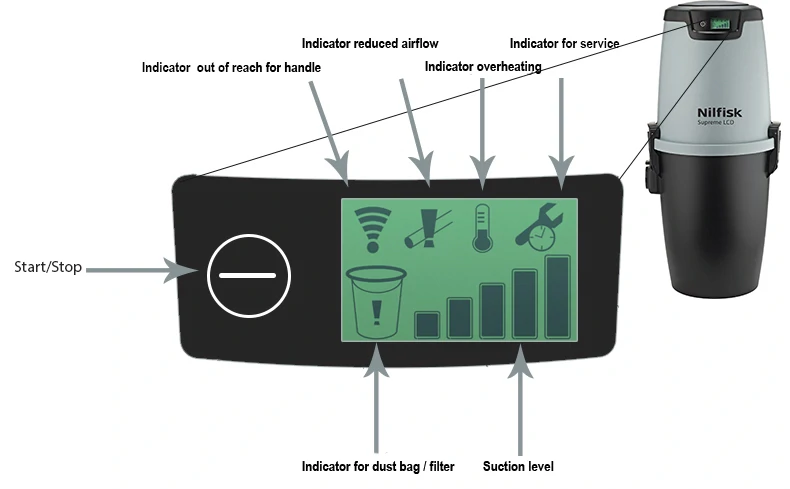 Nilfisk Supreme LCD is a central power unit with a LCD info center display, where information on status of the machine performance is displayed.