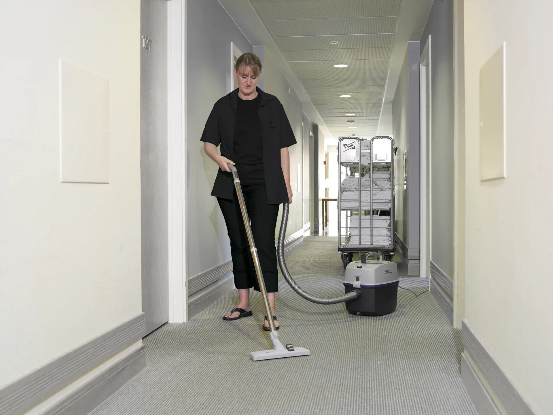 De GD 1000 stofzuiger met hoge zuigkracht en laag geluidsniveau. Voor grotere klussen kunt u de GD 1010 stofzuiger of GDS 1010 (optionele versie met 2 snelheden) stofzuiger nemen. Dankzij de grote capaciteit voor het opvangen van stof, de sterke zuigkracht en het lage geluidsniveau zijn deze stofzuigers perfect om overdag te gebruiken, bijvoorbeeld in recreatieruimten, foyers en hotels. De HDS 1005 stofzuiger heeft een HEPA-filter voor extra hygiënische omgevingen, zoals ziekenhuizen.