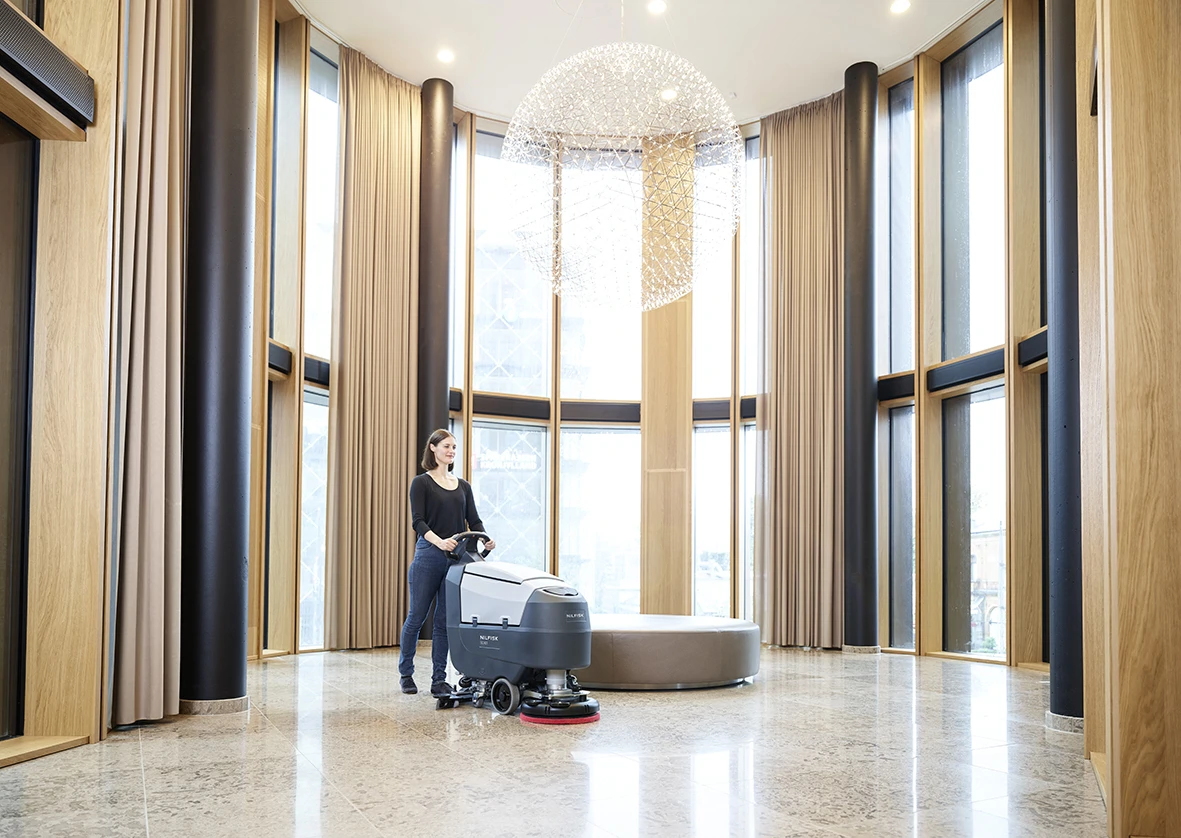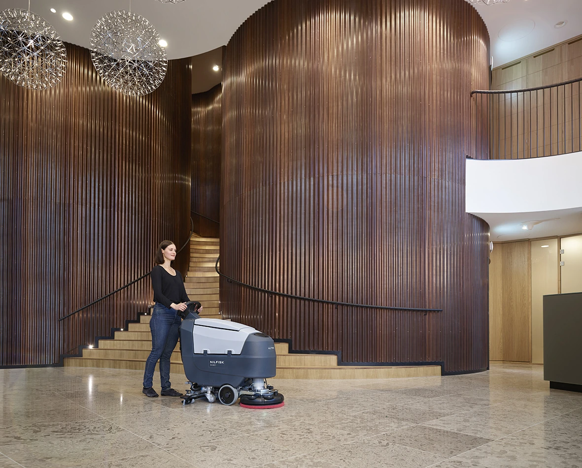 De compacte en gemakkelijk manoeuvreerbare Nilfisk SC401 walk-behind schrobzuigmachine biedt de snelheid, accuratesse en gebruikergemak die nodig zijn voor een betere vloerreiniging. Deze schrobzuigmachine heeft een zeer laag geluidsniveau om dagschoonmaak mogelijk te maken - zelfs in geluidsgevoelige omgevingen.