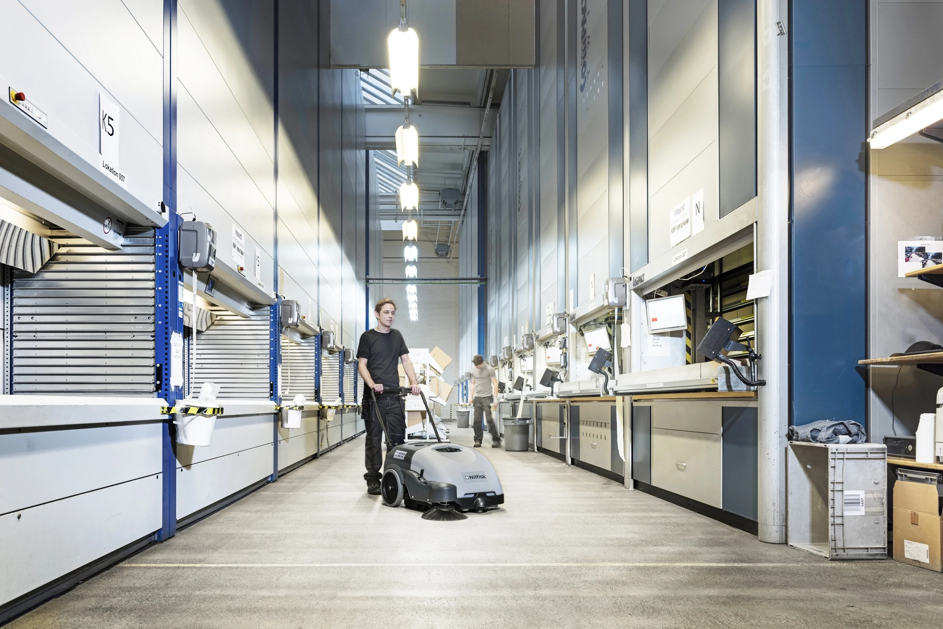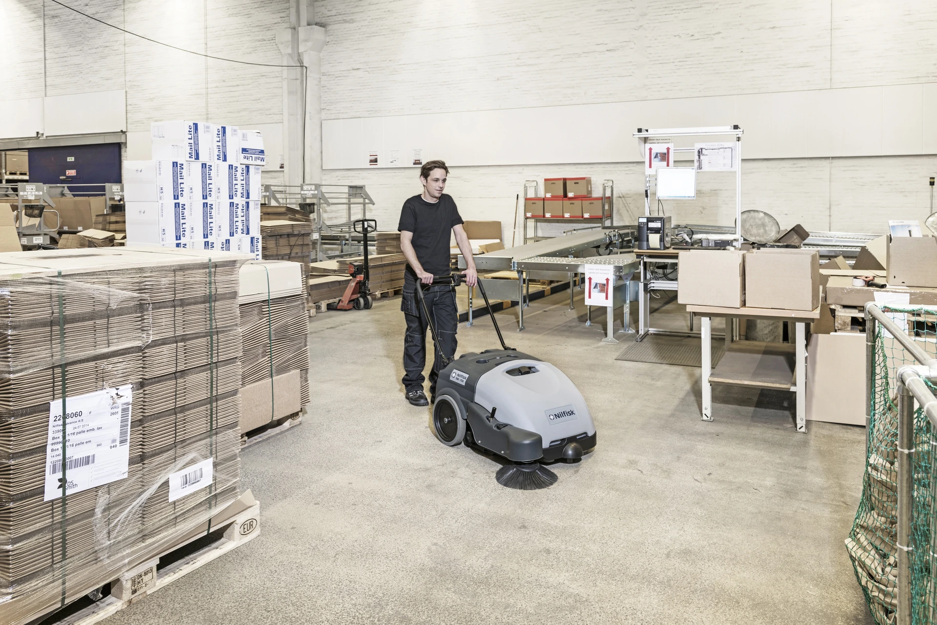Deze batterij-aangedreven, zeer veelzijdige Nilfisk SW750 veegmachine kan worden gebruikt voor het schoonmaken van winkels tot tankstations. De SW750 veegmachine wordt geleverd met ingebouwde lader. De veegmachine is zo stil tijdens de schoonmaak dat hij kan worden gebruikt in geluidsgevoelige omgevingen.