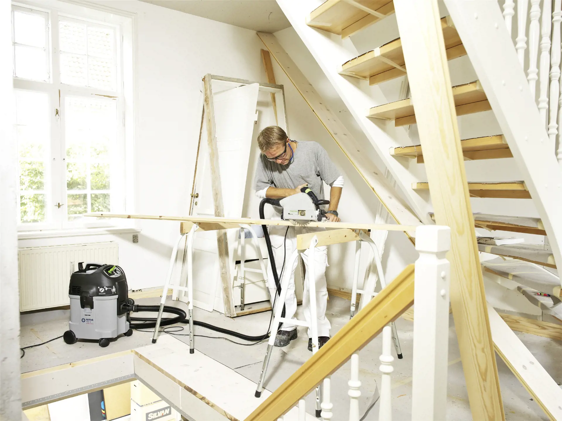 - Automatický systém On/Off v spojení s elektrickým náradím zapína/vypína vysávač
